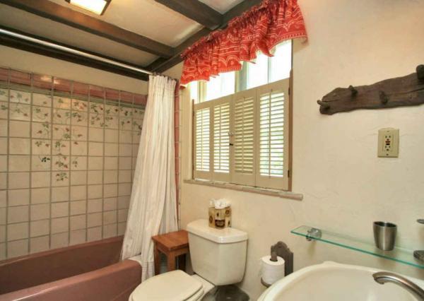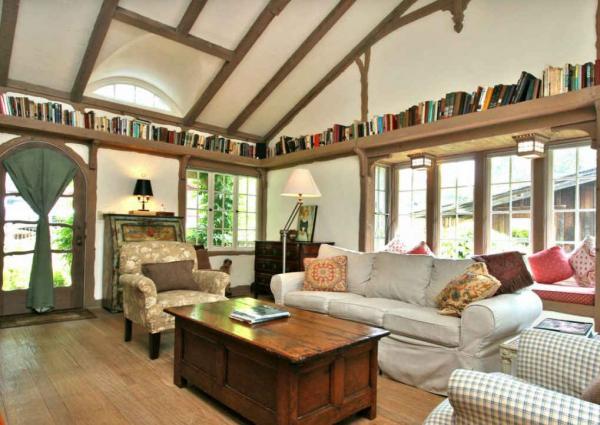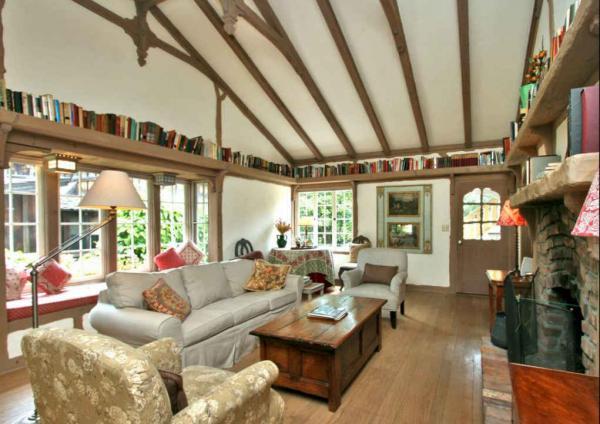 lilacs and laughter house is positioned in Carmel-by-the-Sea, California. This residence looks as if it made fairytale exterior and interior. There are wooden beams on the ceiling, is placed for bookshelf above, it is a quite fascinating chance to place the books on how to spot several of them. The decor is vintage and a bit rustic. The antique-style fireplace helps to support the vintage and fairytale atmosphere. The colors selected are mostly hot add some coziness and comfort.