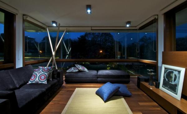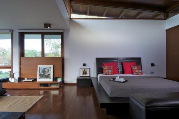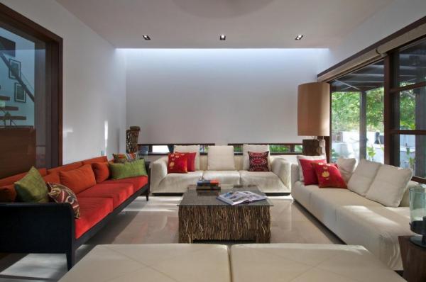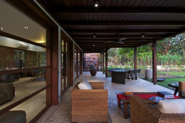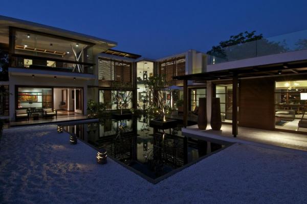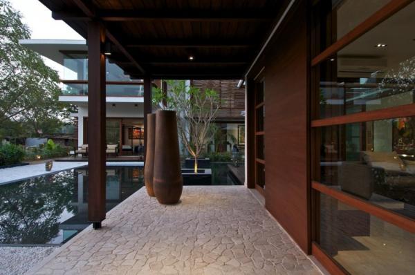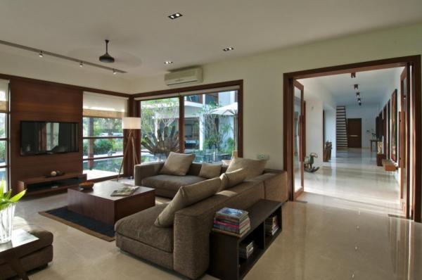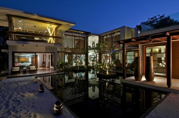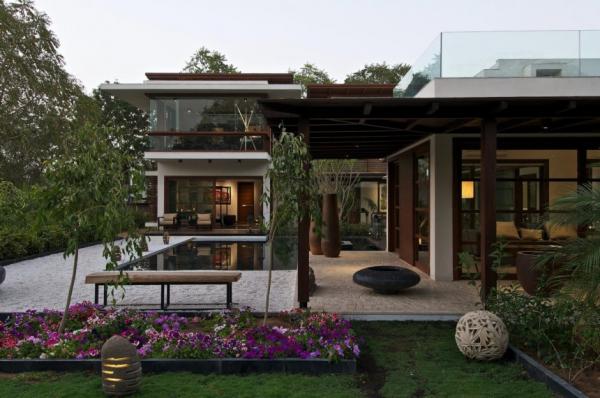 The Courtyard Residence is positioned in newly developed suburbs of Ahmedabad, Gujarat, India by Hiren Patel Architects. Two bedrooms downstairs, for the parents and guests. Two bedrooms upstairs for the young couple and their main school young children running. And a lot of glass windows.