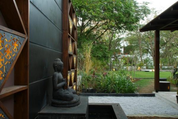 At the center of the courtyard is the wall with the Buddha. "We ended up with a few bags, so we decided to install a Buddha with a wooden background," says Hiren. The wall behind a boundary wall, creating it easy for enhanced privacy. On its surface a triangular wooden grate is set with a metallic, backlit one particular in a delicate lacy design and style to develop an ambiance of pure magic